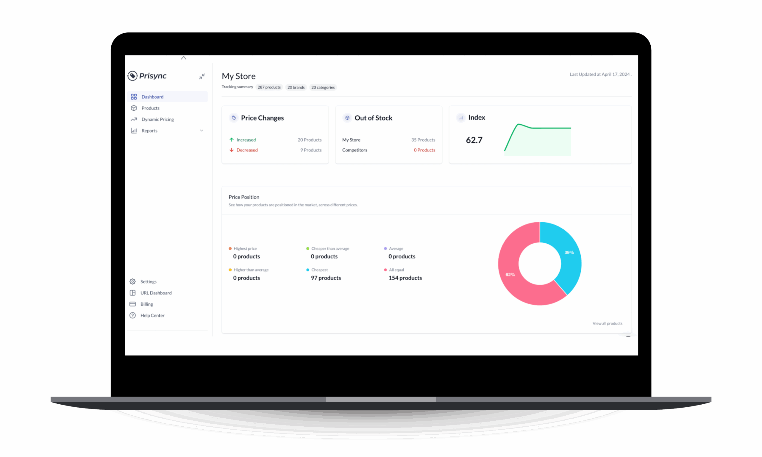 To narzędzie stworzone z myślą o sklepach internetowych, które chcą skutecznie monitorować ceny konkurencji i automatycznie zarządzać własną polityką cenową. Platforma umożliwia śledzenie cen oraz dostępności produktów w innych sklepach online, porównywanie ofert i analizowanie trendów rynkowych.. Dzięki funkcjom automatyzacji Prisync pozwala dynamicznie dostosowywać ceny w zależności od działań konkurencji. Dodatkowo narzędzie generuje raporty i analizy.. Prisync integruje się z popularnymi platformami ecommerce, takimi jak Shopify, WooCommerce, czy Magento.