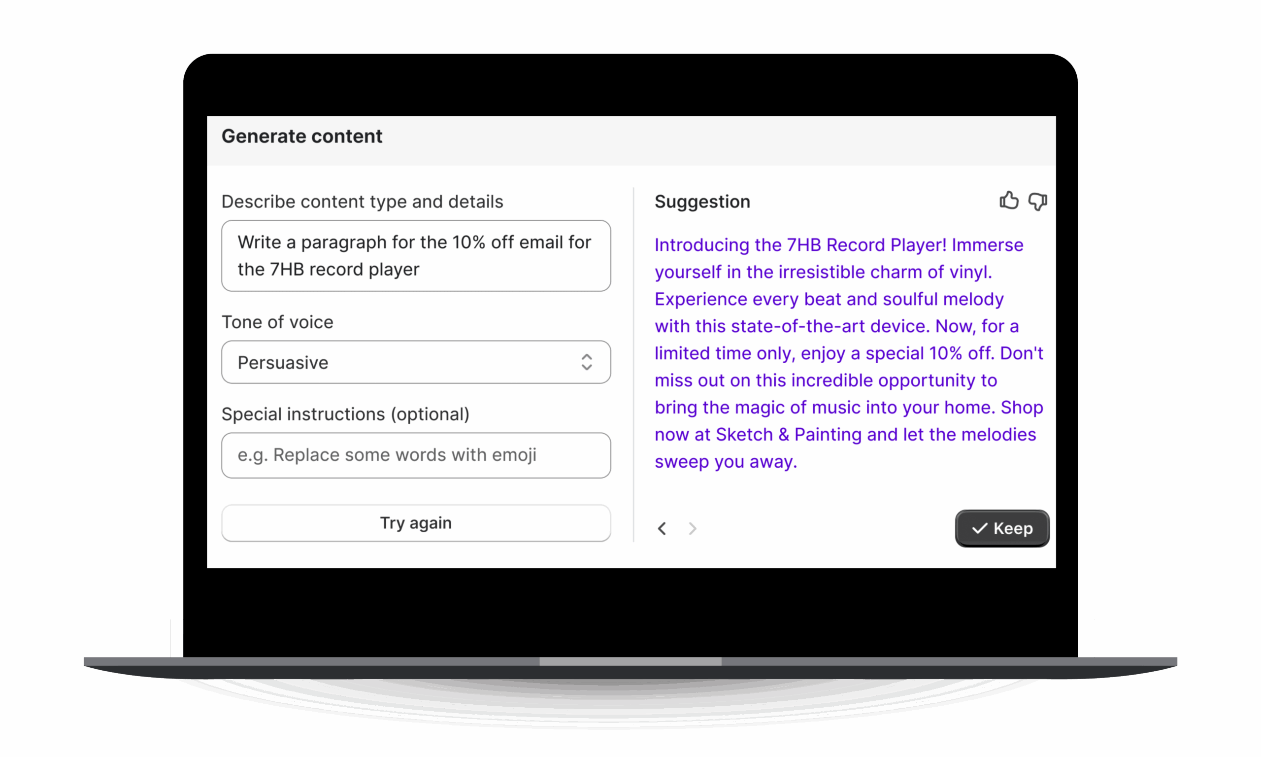 Przedsiębiorcy mogą używać Jasper AI do tworzenia różnego rodzaju treści — od reklam i artykułów po opisy produktów. Platforma oferuje funkcję „voice marki”, która analizuje już istniejące teksty, aby rozpoznać charakterystyczny ton komunikacji firmy, a następnie wykorzystuje tę wiedzę do generowania nowych treści w spójnym stylu. Istnieje również możliwość samodzielnego zdefiniowania tonu i stylu wypowiedzi poprzez wprowadzenie własnych ustawień.W bardziej zaawansowanych planach subskrypcyjnych Jasper AI, przeznaczonych m.in. dla sklepów internetowych, dostępne są dodatkowe funkcje, takie jak obsługa wielu głosów marki, generowanie grafik, narzędzia do współpracy w zespole oraz opcja błyskawicznego tworzenia kampanii, która umożliwia przygotowanie kompleksowych materiałów promocyjnych.
