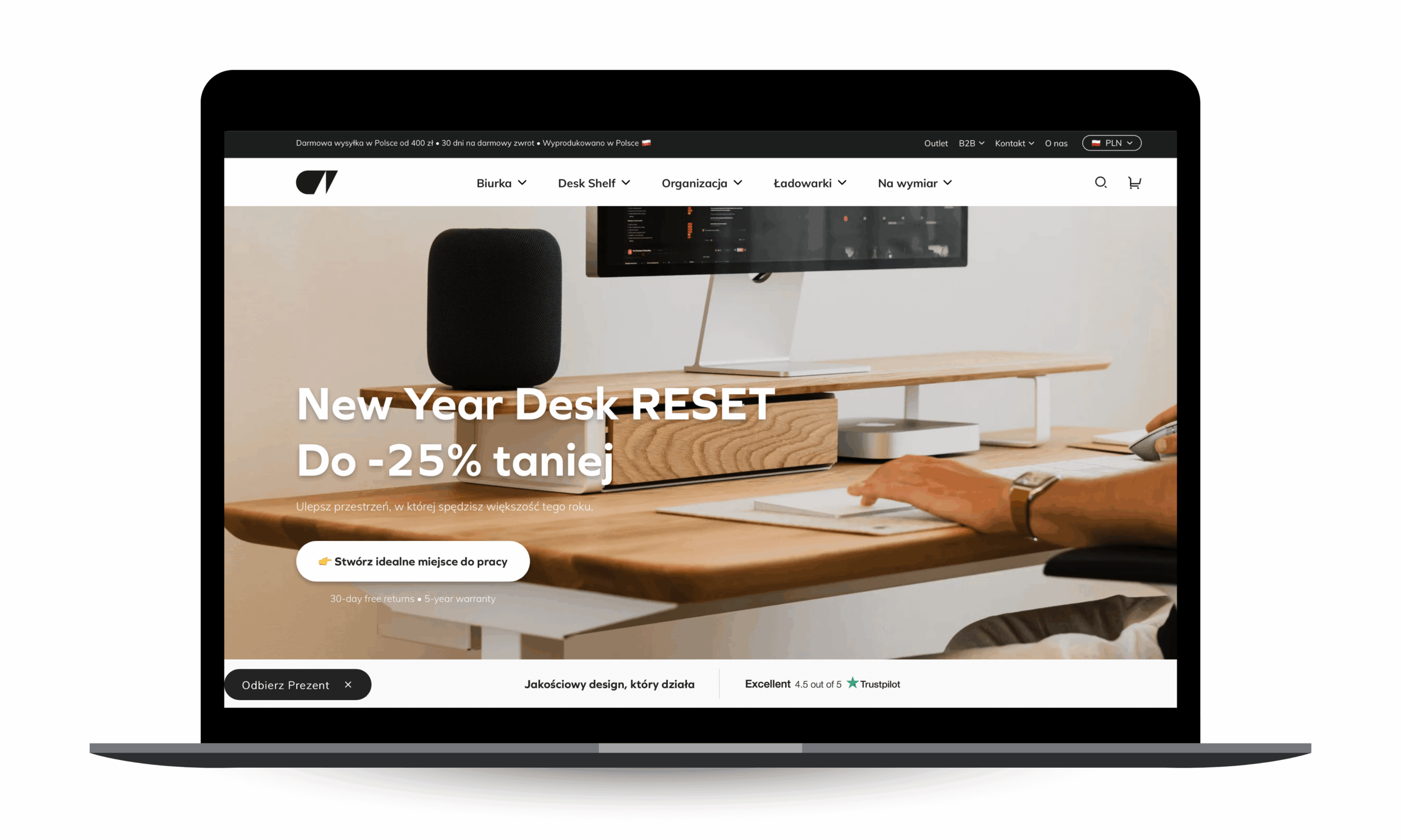 Marka z Podhala, która udowodniła, że akcesoria biurowe z drewna mogą stać się obiektem pożądania na całym świecie. Oakywood wykorzystuje potencjał Shopify Plus, by obsługiwać globalną sprzedaż w sposób niemal całkowicie zautomatyzowany. Sklep oferuje zaawansowany konfigurator produktów 3D. Możliwość personalizacji biurek i akcesoriów w czasie rzeczywistym drastycznie podnosi zaangażowanie klienta i buduje zaufanie do marki.