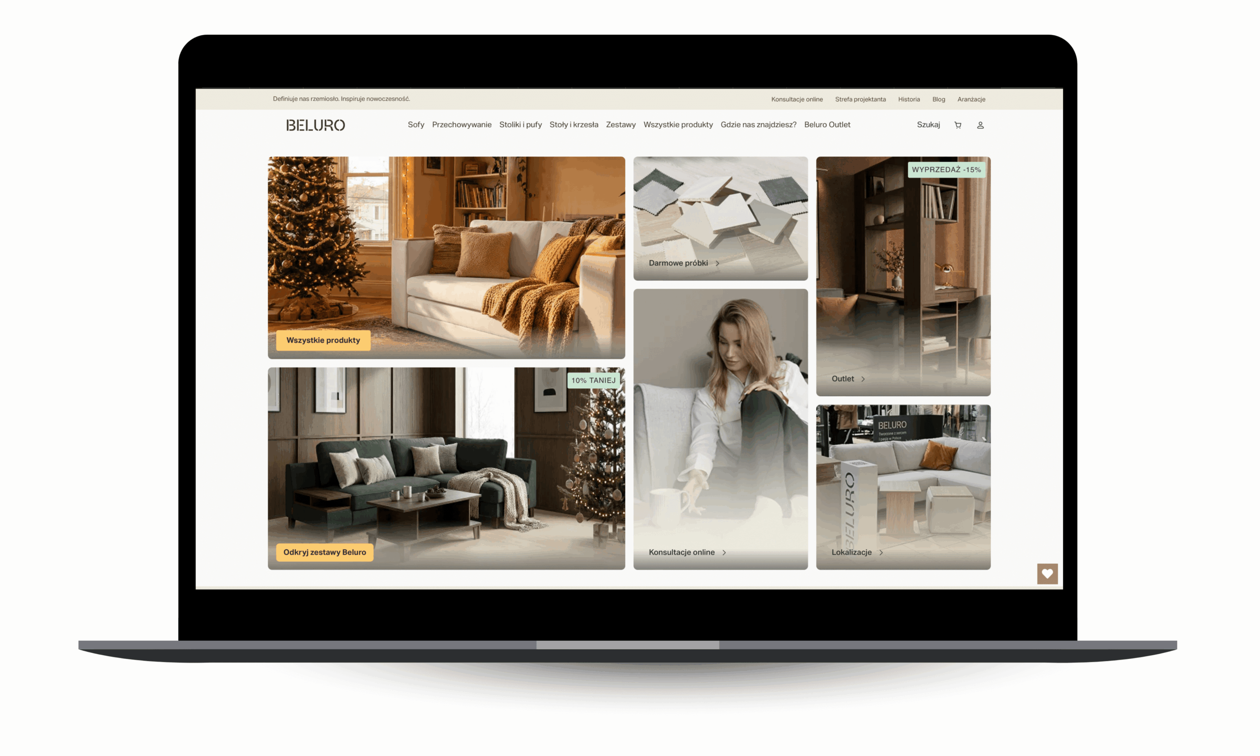 W świecie mebli tapicerowanych decyzja o zakupie trwa najdłużej. Beluro na swoim sklepie Shopify stara się ten proces maksymalnie uprzyjemnić, stawiając na estetyczne zdjęcia typu lifestyle oraz czytelną komunikację parametrów technicznych. Sklep jest świetnie zoptymalizowany pod urządzenia mobilne. Proces wyboru sofy czy łóżka na smartfonie jest tak samo wygodny, jak na komputerze, co w branży Home & Decor wciąż nie jest standardem.