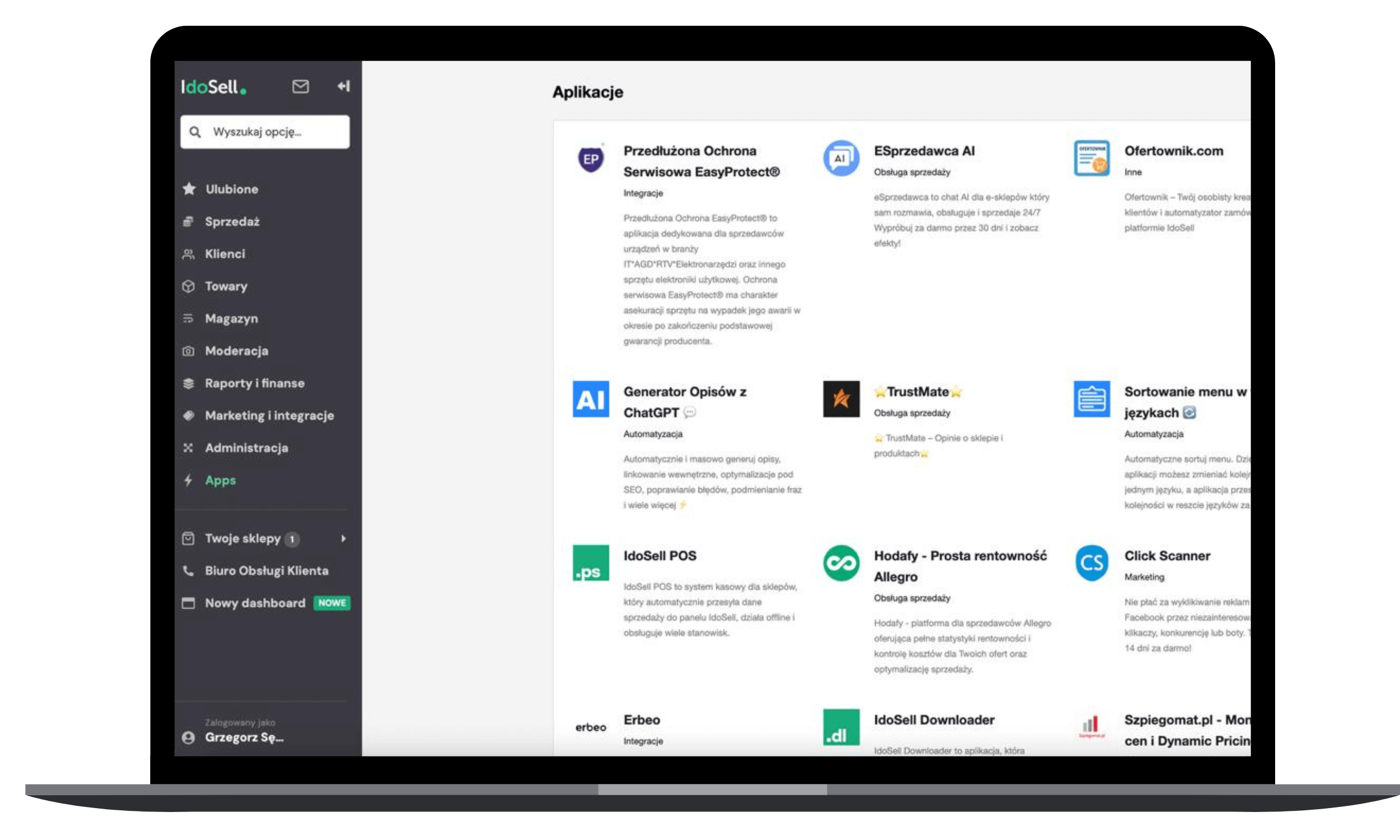 IdoSell nie posiada otwartego marketplace’u z aplikacjami i wtyczkami takiego jak Shopify, dlatego możliwości rozbudowy funkcji sklepu są bardziej ograniczone. Platforma oferuje jednak szeroki zestaw gotowych, wbudowanych modułów – m.in. integracje z systemami płatności, kurierami, marketplace’ami.