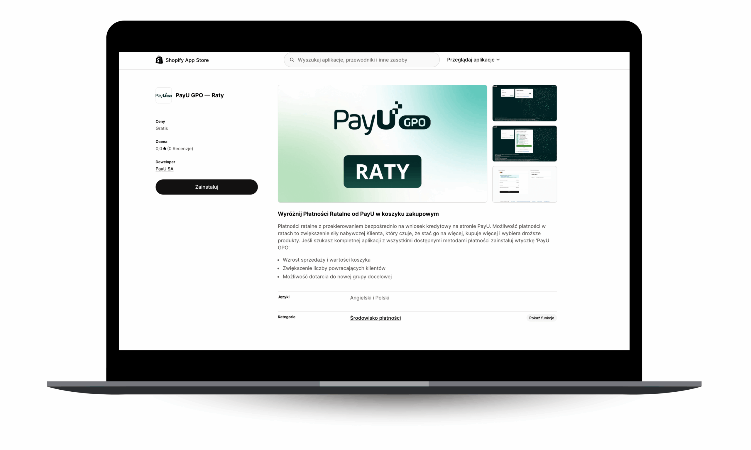 Link do aplikacji PayU Raty w Shopify App Store znajdziesz tutaj.