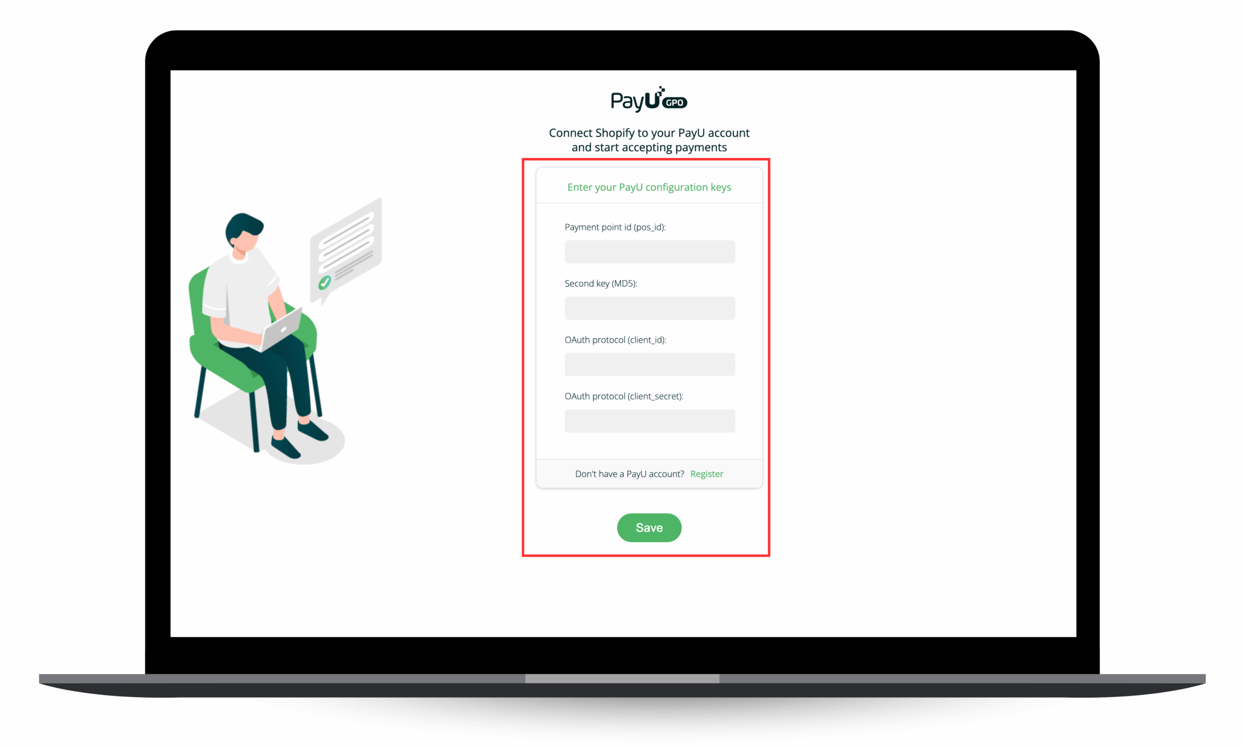Po instalacji aplikacji zostaniesz poproszony o podanie kluczy konfiguracyjnych, które znajdziesz w panelu managera PayU:
