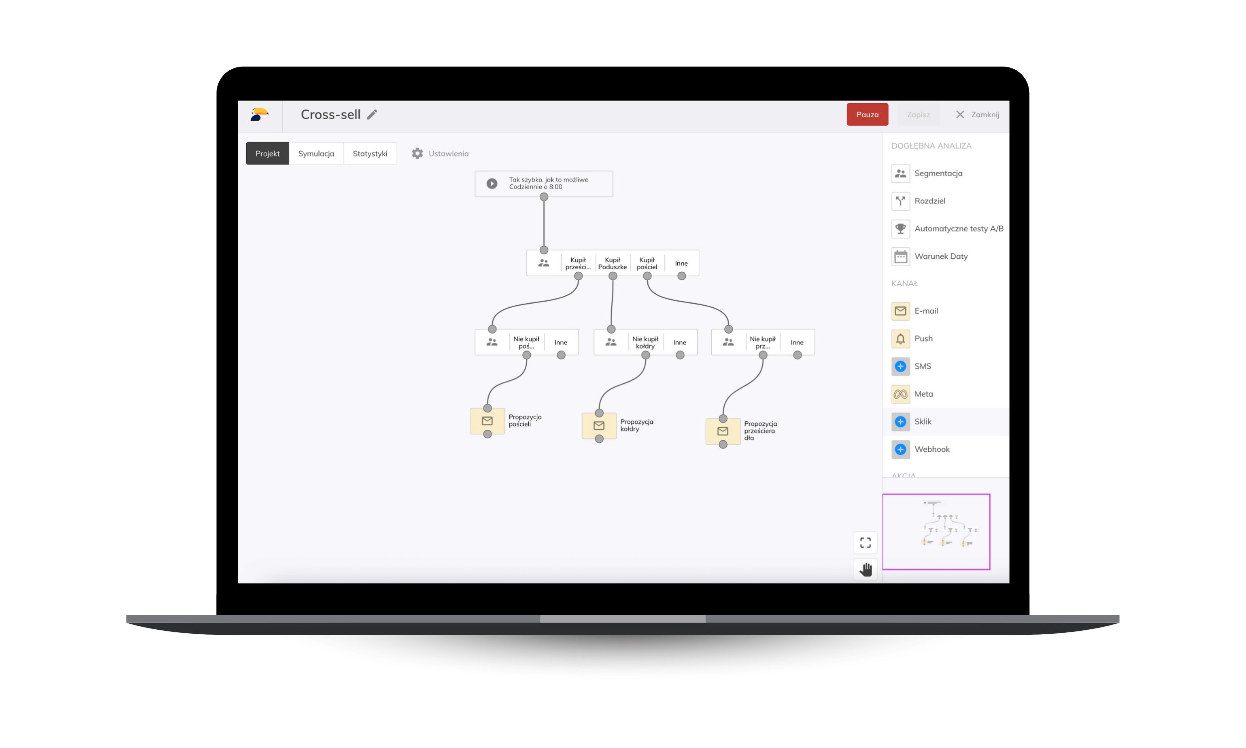 Wdrożenie głównych automatyzacji email marketingowych. Wdrożenie automatyzacji powitalnej z porzuconym koszykiem, automatyzacji cross-selling i kilku innych.